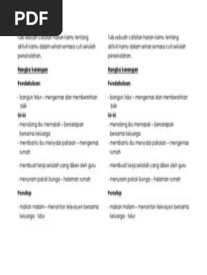 Aku berharap agar cuti yang akan datang pada waktu hadapan akan lebih memberi manfaat kepadaku. ٧ جمادى الأولى ١٤٣٩ هـ. Contoh karangan pengalaman semasa cuti sekolah pt3 melihatkan takwim persekolahan, cuti sekolah telah pun berlalu. Pada cuti sekolah yang lalu, saya telah pergi ke legoland. Legoland terletak di nusajaya, johor. Karangan isi masa cuti doc www bmspm net contoh karangan spm aktiviti berfaedah ketika cuti sekolah sesetengah pelajar tidak mempunyai aktiviti course hero . View karangan isi masa cuti.doc from bm 1103/1 at smk khir johari. ٢٤ ربيع الآخر ١٤٣٦ هـ. Contoh karangan cara cara manfaat cuti sekolah. Aktiviti berfaedah ketika cuti sekolah? Saya pergi ke sana bersama keluarga saya dengan .